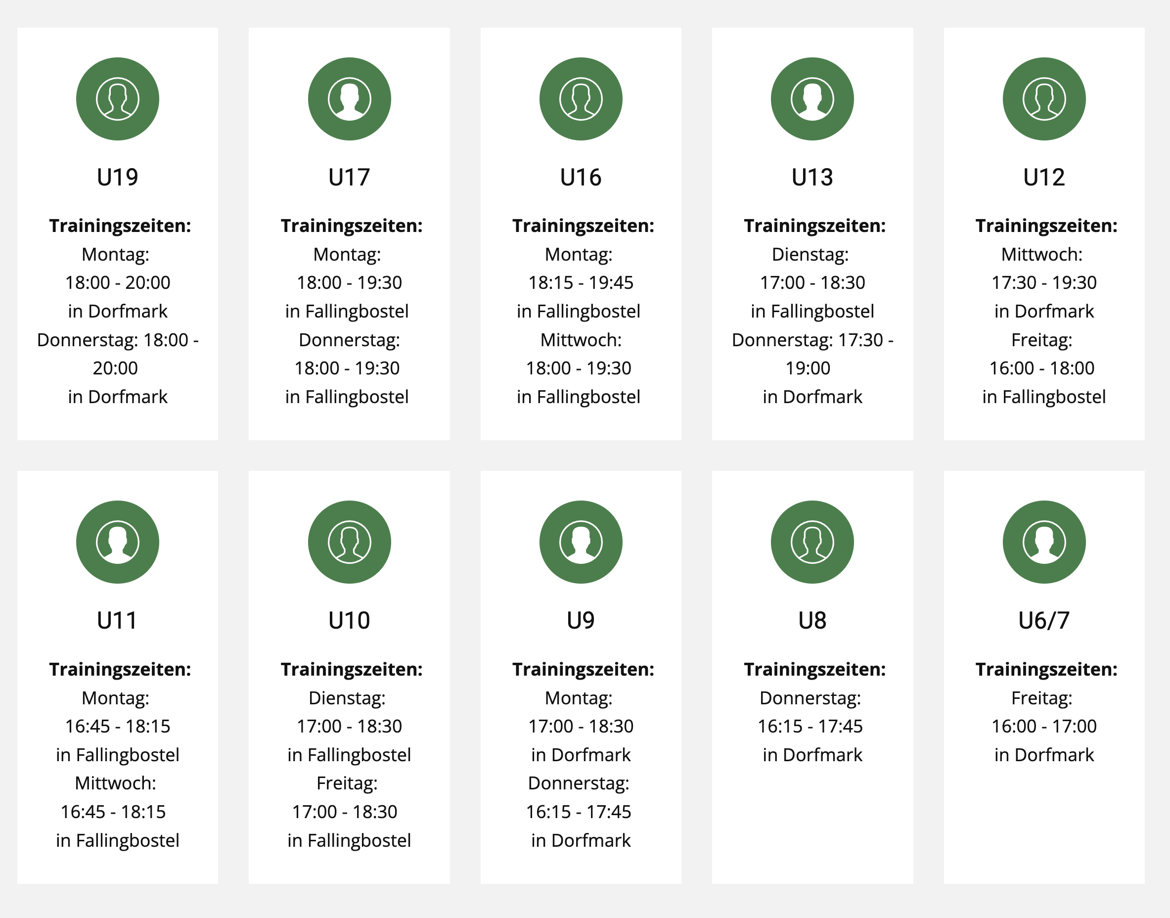 Unsere Trainingszeiten im Überblick: